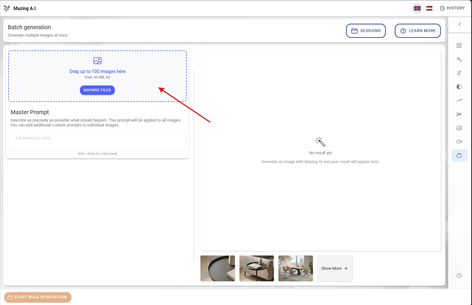 * Each Bulk session processes all images with the **same prompt and settings**.