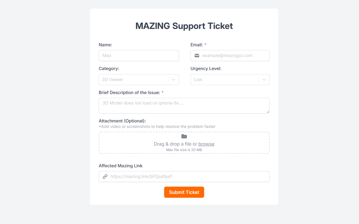 **1.)** **Visit the Mazing World platform** and click on **"Support Ticket"**.