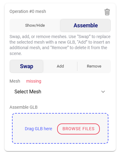 Select the **Assemble** mode for more complex projects. You can choose between *swap*, *add*, or *remove* operations.